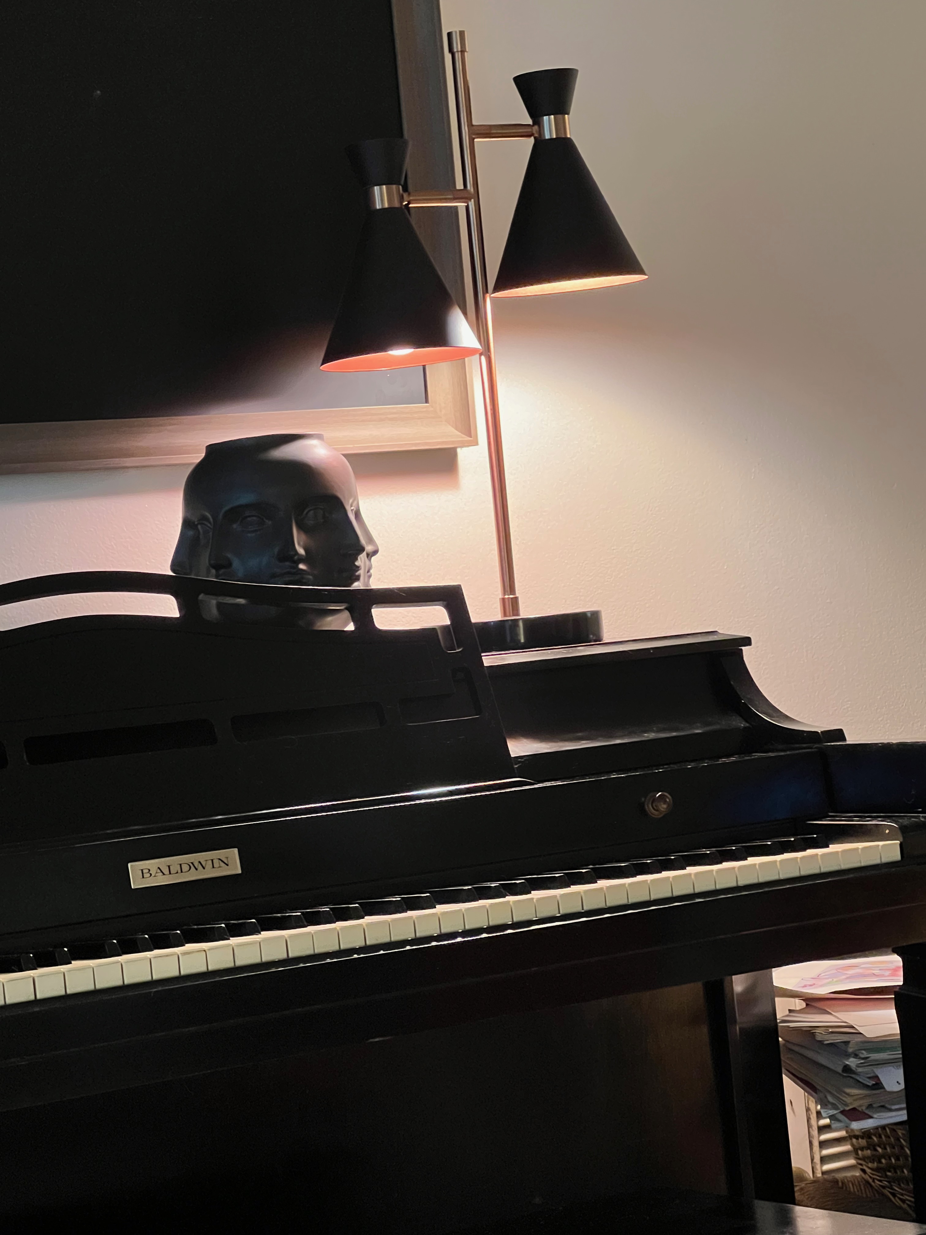 Now I have this little Baldwin, an upright beauty who had just one previous owner, a composer on Miami Beach. I’ve had the piano 35 years or so, and it was vintage when I bought it at a consignment shop in Coral Gables before moving to Naples.